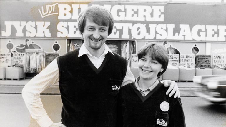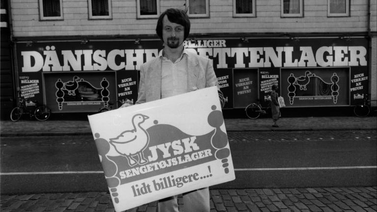 - JYSK’s founder and owner, Mr. Lars Larsen, is among the first in Denmark to use TV commercials when he appears on regional TV channel ‘TV South’. His ‘great offers’ lead to success for JYSK.