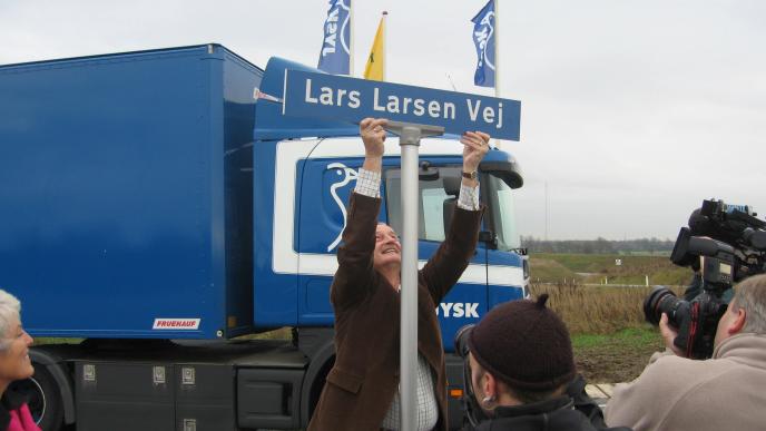 - On 20 November, Lars Larsen has a street named after him. The Municipality of Torring-Uldum dedicates Lars Larsens Vej to him as a means of thanking JYSK for building Northern Europe's largest warehouse in Uldum in Mid-Jutland.